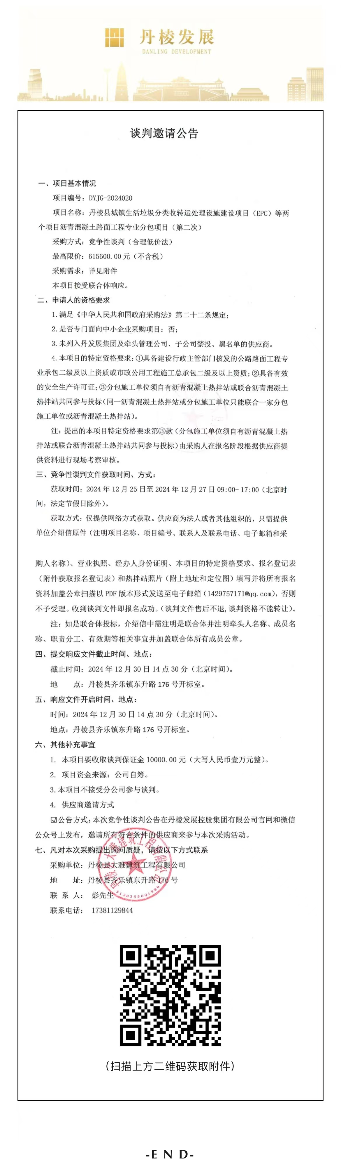 丹棱縣城鎮(zhèn)生活垃圾分類收轉(zhuǎn)運(yùn)處理設(shè)施建設(shè)項(xiàng)目(EPC)等兩個項(xiàng)目瀝青混凝土路面工程專業(yè)分包項(xiàng)目(第二次)談判邀請公告