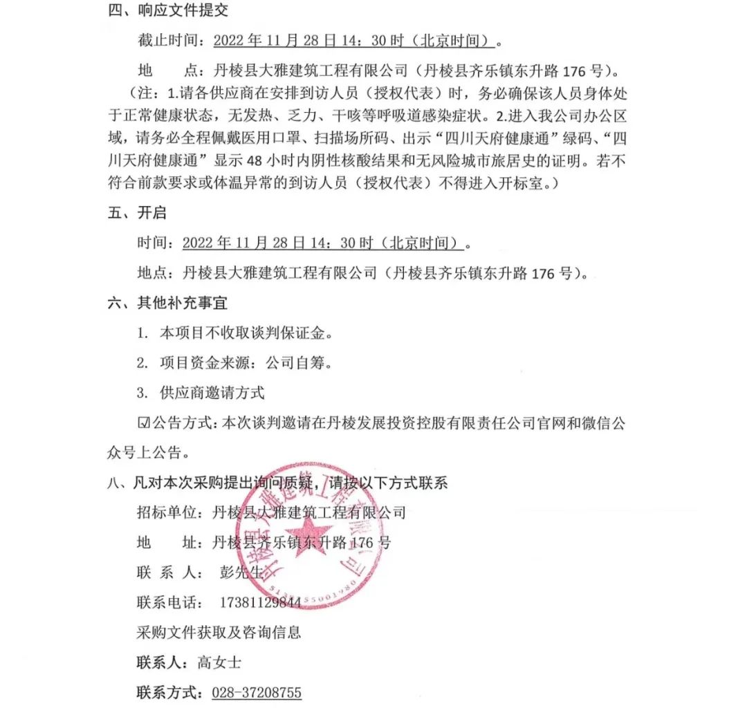 丹棱縣食品園區(qū)建設項目 (一期)--丹棱凍粑產(chǎn)業(yè)園建設項目設計、施工、采購總承包 (EPC) 電梯采購及安裝采購項目談判邀請公告