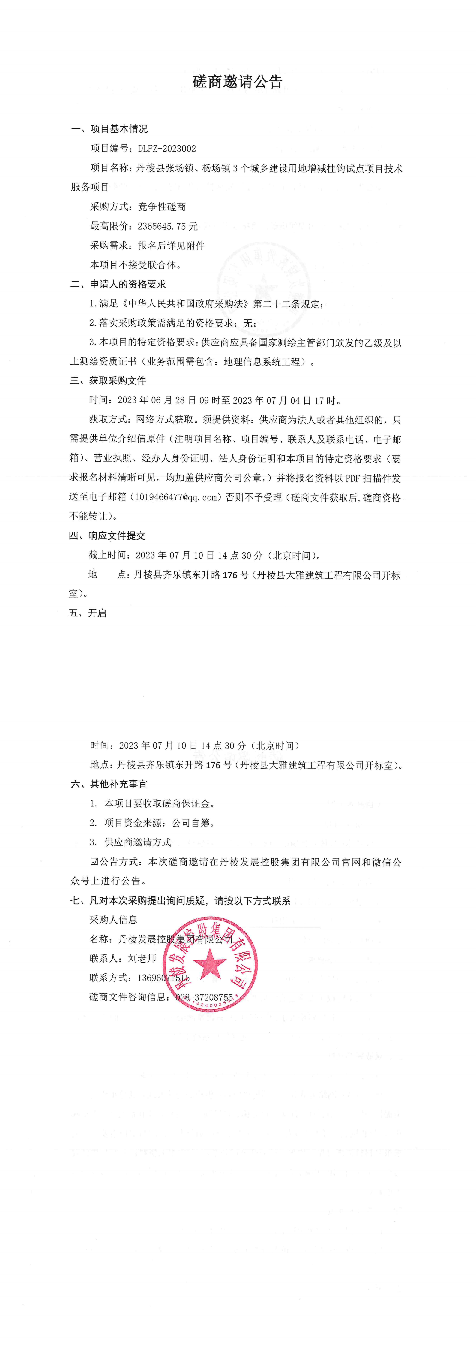 項(xiàng)目名稱:丹棱縣張場鎮(zhèn)、楊場鎮(zhèn)3個城鄉(xiāng)建設(shè)用地增減掛鉤試點(diǎn)項(xiàng)目技術(shù)服務(wù)項(xiàng)目磋商邀請公告