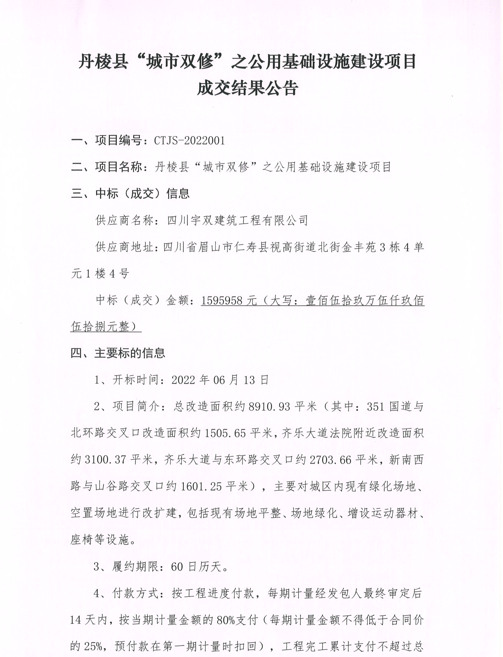 丹棱縣“城市雙修”之公用基礎(chǔ)設(shè)施建設(shè)項目成交結(jié)果公告