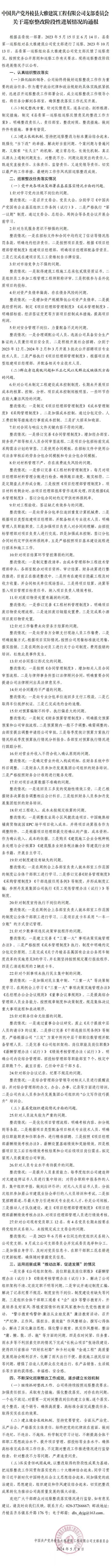 中國(guó)共產(chǎn)黨丹棱縣大雅建筑工程有限公司支部委員會(huì)關(guān)于巡察整改階段性進(jìn)展情況的通報(bào)