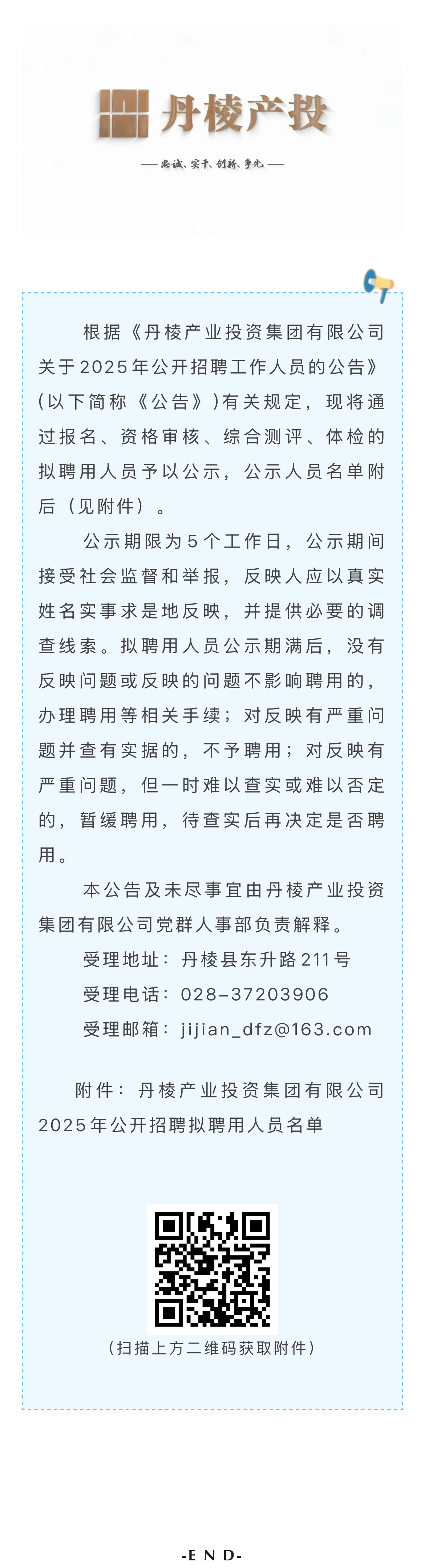 丹棱產(chǎn)業(yè)投資集團(tuán)有限公司關(guān)于2025年公開招聘擬聘用人員的公示
