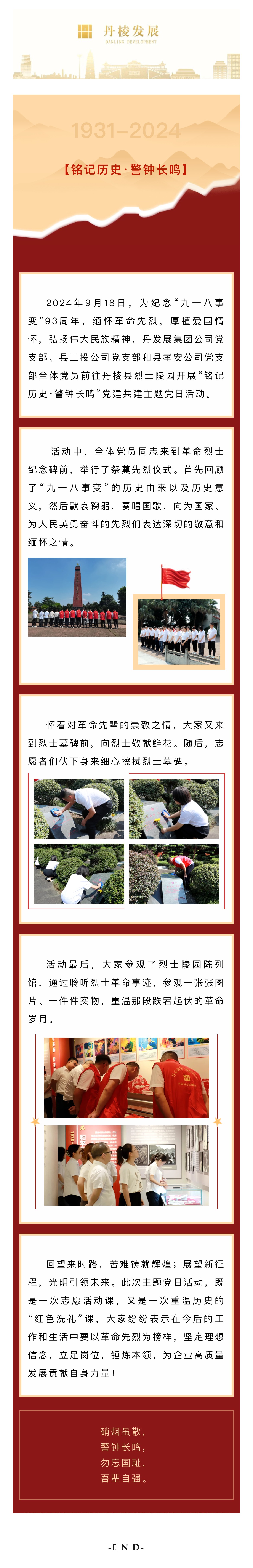 結(jié)對共建,共育共進|丹發(fā)展集團公司黨支部開展開展“銘記歷史·警鐘長鳴”黨建共建主題黨日活動