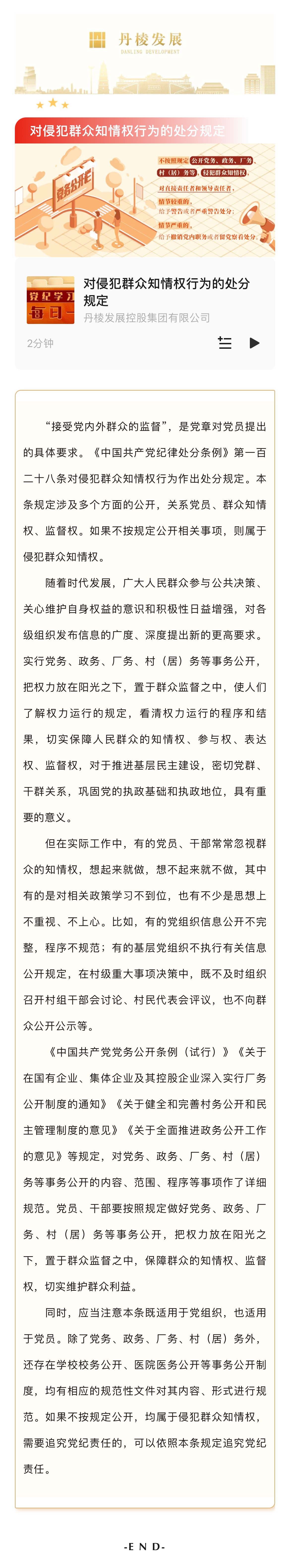 【黨紀(jì)學(xué)習(xí)教育】每日一課丨對(duì)侵犯群眾知情權(quán)行為的處分規(guī)定