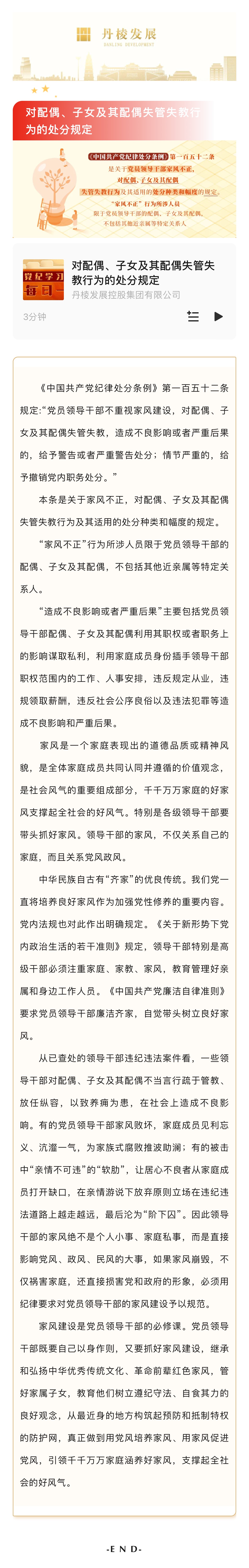 【黨紀(jì)學(xué)習(xí)教育】每日一課丨對(duì)配偶、子女及其配偶失管失教行為的處分規(guī)定